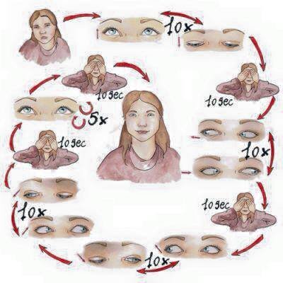 Дээш хараад нүдээ нар зөв болон буруу эргэлдүүлнэ.