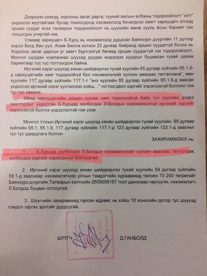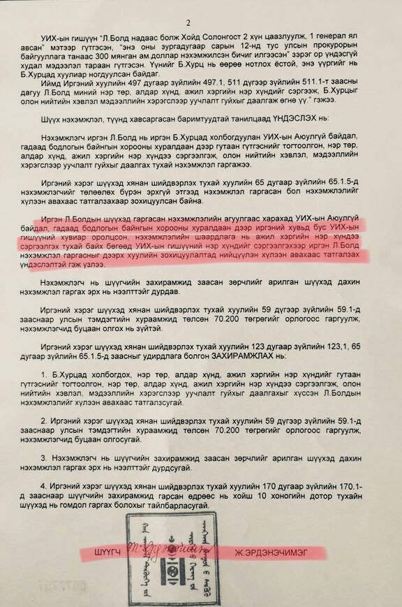 Энэ кэйсээс дараах асуултууд зүй ёсоор урган гарч ирж байна. Нэг холбогдогчтой нэхэмжлэл дээр хоёр "нүүр” гаргаж буй шүүх асуудлыг хараат бусаар, шударгаар шийдэж чадах уу? Монгол Улс үнэхээр хуулийн засаглалтай улс мөн үү? Үүн дээр манай хуульч, өмгөөлөгчдийн холбоо энэ кэйсийг судалж мэтгэлцээн өрнүүлбэл дараа дараагийн шүүхийн практикт хувь нэмэр болохоор байна.