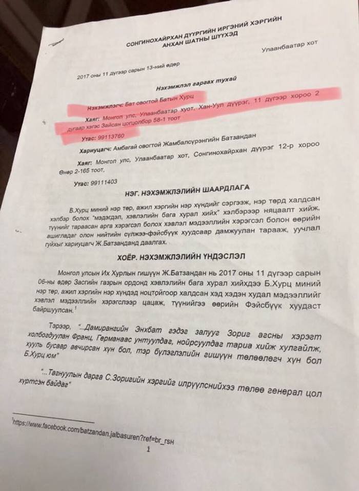 УИХ-ын гишүүн Л.Болдын эдгээр нэхэмжлэл тус бүр Ж.Эрдэнэчимэг гэдэг шүүгчид хуваарилагдан очсон ба эхний удаад "хаягийг тодорхой бичиж өг” гэсэн бол хоёр дахь удаад "иргэний нэр хүндэд биш УИХ-ын гишүүний нэр хүндэд халдсан учир УИХ-ын гишүүний хувиар өргөдлөө гарга” гэсэн үндэслэлээр буцаагдсан байна. Дараагийн удаад "хаяг дээрээ бүртгэлтэй боловч оршин суудаггүй тул оршин суугаа газрын хаягаар өргөдлөө гарга” гэсэн шалтгаанаар буцаагдсан аж. Энэ мэт үндэслэлээр Л.Болдын нэхэмжлэл шүүхээс буцаагдсан тул тэрбээр эцэст нь Б.Хурцын амьдардаг гэх АСЕМ Вилла хотхоны хаягаар Баянзүрх дүүргийн Иргэний хэргийн анхан шатны шүүхэд өргөдөл гаргатал "хаяг дээрээ оршин суудаг нь тогтоогдоогүй” хэмээн нэхэмжлэлийг мөн л буцаажээ. Тэгэхээр тагнуулч Б.Хурц хаана амьдардаг болж таарах вэ?