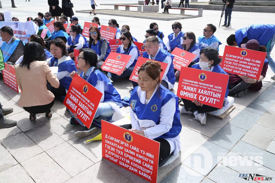 Тэрбээр "Эрүүл мэндийн ажилтны үйлдвэрчний эвлэлийн холбооноос 2018 оны тавдугаар сарын 8-нд 8300 гаруй ажилчид жагсаал цуглаан хийж Эрүүл мэндийн яам, Засгийн газарт цалинг нэмэгдүүлэх шаардлага хүргүүлсэн. Өнөөдрийг хүртэл хэлэлцээрийн ширээний ард бид суугаагүй байна. Эрүүл мэндийн салбарын ажилчид биедээ ахадсан их ачаа үүрдэг. Энэ тэмцэл бол шударга тэмцэл, тийм ч учраас тодорхой үр дүнд хүрэх ёстой.