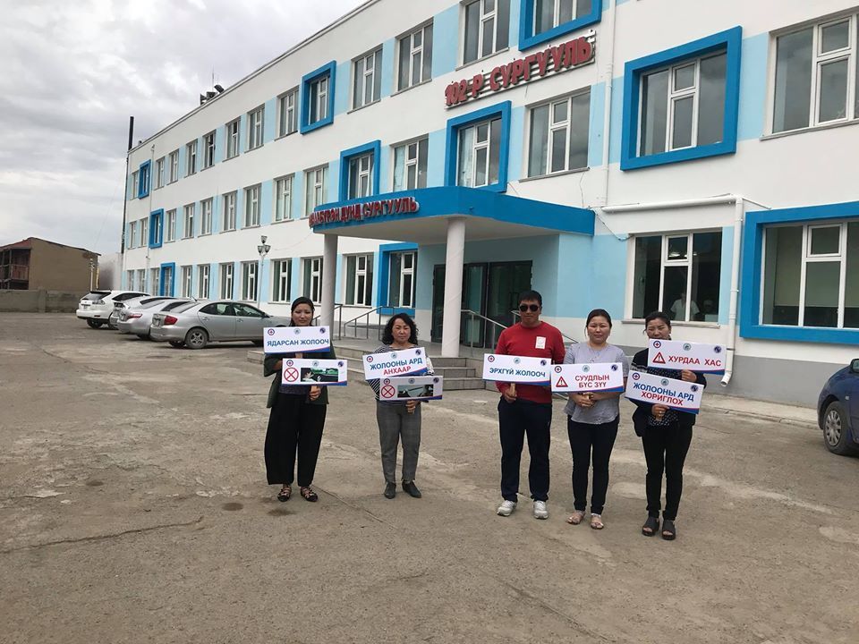 Иймд дүүрэг дэх Замын цагдаагийн хэлтсийн албан хаагчид болон 102 дугаар сургуулийн багш нар дүүргийн 2 дугаар хороо Дарь-Эх орчимд замын хөдөлгөөнд оролцож буй иргэдэд болон зорчигчдод замын хөдөлгөөний осол, аваараас урьдчилан сэргийлж, хөдөлгөөнд анхаарал болгоомжтой оролцохыг уриалсан сэрэмжлүүлэх самбарыг үзүүлж зам тээврийн ослоос урьдчилан сэргийлэх ажлыг амжилттай зохион байгуулж байна.
