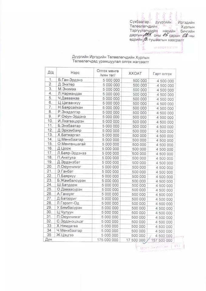 Сүхбаатар дүүргийн Иргэдийн төлөөлөгч 35 хүн тус бүрт 4.5 сая төгрөг урамшуулал нэрээр тараажээ. Дүүргийн төлөөлөгч болох чинь ийм л ашигтай юм байхдаа...