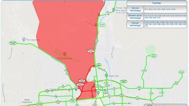 Иймд шуурхай зохицуулалтын арга хэмжээтэй холбогдуулан зарим чиглэлийн батлагдсан замнал, цагийн хуваарьт өөрчлөлт оруулж шуурхай зохицуулалт хийгдэх тул иргэдэд доорх зураглалтын дагуу зорчилтоо төлөвлөнө үү. Нийтийн тээврийн үйлчилгээтэй холбоотой санал, хүсэлтийг тус газрын 70044040 дугаарын утсаар тогтмол хүлээн авч, шуурхай шийдвэрлэнэ.