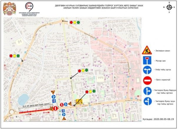 Чингэлтэй дүүрэг, Их тойруу, Дөлгөөн нуурын уулзвараас Баянбүрдийн тойрог хүртэлх автозамын зүүнээс баруун чиглэлийг 2020.08.05-ны 23.00 цагаас 2020.08.19-ны 06.00 цагийн хоорон бүрэн хааж цэвэр, бохир усны шугам суурилуулалтын ажил хийгдэнэ.