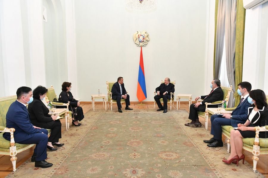 Жуух бичиг барьсны дараа Элчин сайд Арменийн Ерөнхийлөгчид бараалхаж, Итгэмжлэх жуух бичгийг нь хүндэтгэлтэйгээр гардан авч, цаг зав гарган уулзаж буйд талархал илэрхийлээд, Монгол Улсын Ерөнхийлөгч Халтмаагийн Баттулгын дэвшүүлсэн мэндчилгээг уламжлав.