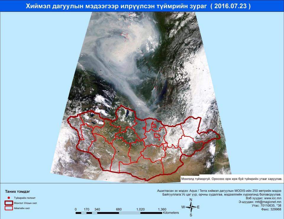 Төв Сибирийн тэгш өндөрлөгийн их ой хөвчид асар том түймэр гарч хоёр хоногийн өмнөөс Сэлэнгэ, Дархан-Уул, Төв аймгууд, Улаанбаатар хот гээд Орхон, Сэлэнгэ мөрний ай сав дагуух хөндий, хотгороор дамжин асар их хэмжээний түймрийн утаа орж ирж ээ. Байгаль нуураас баруун хойд зүгт хойд мөсөн далай хүртэл 500 гаруй томоохон түймрийн голомт байна гэж эх сурвалжаас мэдээлсэн байна.