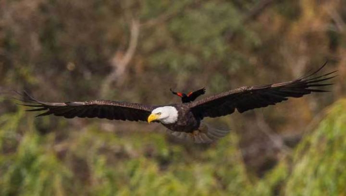 Далавчны дэлэц нь 70 сантиметрт хүрдэг Америкийн бэлгэдэл болсон эндхийн хамгийн том жигүүртнийг хөлөглөхөөр шийдсэн бяцхан шувууны эр зоригийг сэтгүүлчиддурдаж байна.