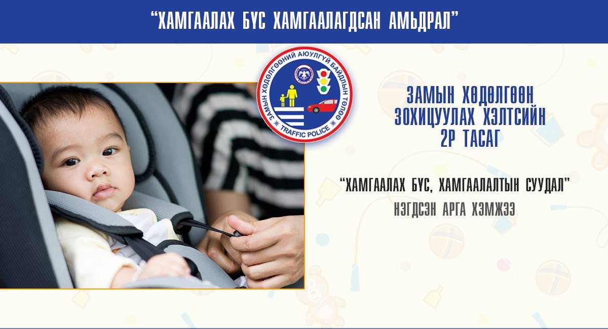 Иргэдийнхээ амь нас аюулгүй байдлыг ханган ажиллах нь цагдаагийн албан хаагчдын эрхэм зорилго билээ. Тиймээс Замын Цагдаагийн Тасгийн албан хаагчид "Хамгаалах бүс, хамгаалалтын суудал” нэгдсэн арга хэмжээг иргэд рүүгээ чиглэсэн оновчтой аян хэмээн идэвхитэй зохион байгуулж байгаа аж.