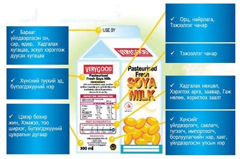 Импортын хүнсний түүхий эд, бүтээгдэхүүний шошгод агуулагдах мэдээлэл нь Монгол эсвэл Англи, Орос хэлний аль нэгээр бичигдсэн байна.