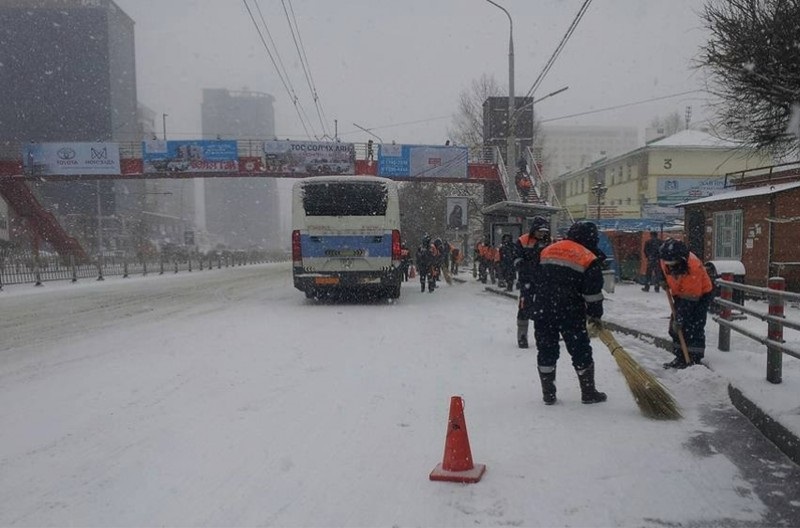 Явган хүний аюулгүй байдлыг хангах үүднээс цас орсон даруйд явган хүний замыг цас үлээгч болон шүүрээр цэвэрлэж байна. Сүхбаатарын талбайн цасыг цэвэрлэхэд 25 хүн, 11 машин ажиллаж, 30 рейсээр 120тонн цас цэвэрлэж ажиллалаа гэж Хот тохижилтын газраас мэдээллээ.