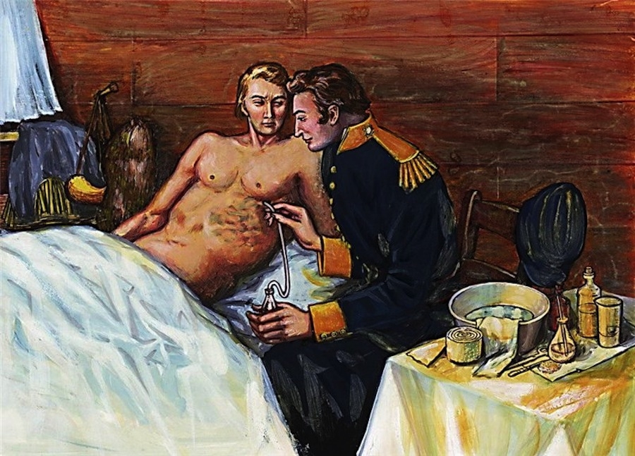 Одоогийн нөхцөлд бол нэлээн хүнлэг бус эмчилгээ, судалгаа юм л даа. Уильям Бомонт түүнд мэс засал хийж, гэхдээ бие махбодийн амин чухал үйл ажиллагааг хадгалахын тулд гэдэсний хөндийд нүх үлдээхэд хүрчээ.