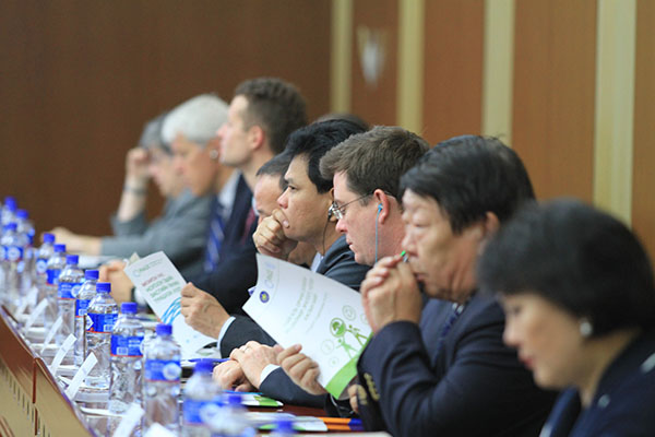 Уулзалтад Монгол улсын ерөнхий сайд Ж. Эрдэнэбат илгээлт ирүүлж, УИХ-ын Эдийн засгийн байнгын хорооны дарга Д. Тэрбишдагва, БОАЖЯ-ны сайд Д. Оюунхорол, Сангийн дэд сайд Х. Булгантуяа, МУ дахь НҮБ-ын суурин төлөөлөгч хатагтай Беате Транкманн, Ногоон эдийн засгийн төлөөх түншлэлийн Ногоон эдийн засгийн асуудал хариуцсан дарга Асад Накви, БОАЖЯ Ногоон хөгжлийн бодлого, төлөвлөлтийн газрын дарга Т. Булган, Үндэсний статистикийн хорооны Эдийн засгийн статистикийн газрын дарга Э. Эрдэнэсан, НҮБ-ын байгаль орчны хөтөлбөрийн ахлах зөвлөх Марк Халле зэрэг төлөөлгчид илтгэл тавьж нээлттэй хэлэлцүүлэг хийсэн юм.