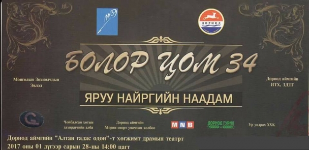МЗЭ-ээс жил бүр уламжлал болгон зохион байгуулдаг оны шилдэг яруу найраг, шилдэг шүлэгчийг тодруулах Болор цом 34 дэх удаагийн наадам энэ 1-р сарын 28-нд Дорнод аймгийн Чойбалсан хотод болно.