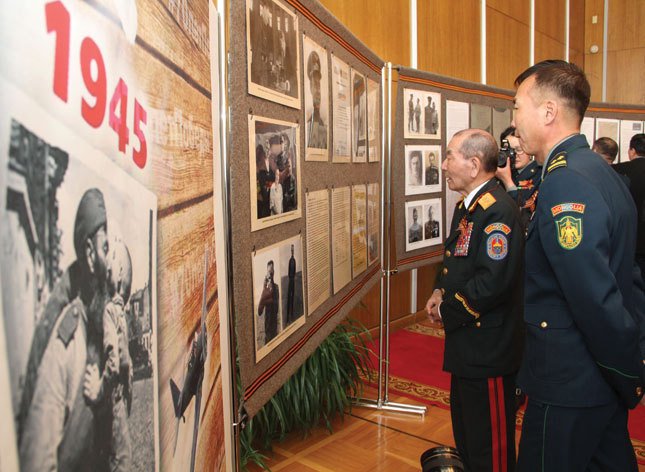 Зөвлөлт, Монголын цэргүүд Халх голын дайнд ялалт байгуулсны 75 жилийн ойг Монгол, ОХУ өнгөрсөн жил хамтран тэмдэглэж байсан бол Аугаа их Эх орны дайнд ялалт байгуулсны түүхт 70 жилийн ойг энэ жил мөн хамтран тэмдэглэж байна. Дайн самуунтай тэртээх хүнд он жилүүдэд Зөвлөлт, Монголын цэргүүд мөр зэрэгцэн тулалдаж, гар нийлэн ажиллаж байсан цаг үе эдгээр өдрүүдэд тохиож байгаа юм. Хоёр улсаас түүхт ойгоо угтаж олон арга хэмжээ зохион байгуулж байгаагийн нэг нь Монгол Улс дахь ОХУ-ын Элчин сайдын яамны сүлдэт танхимд дэлгэсэн "Халх голын цэрэг дайчид-Аугаа их Эх орны дайны баатрууд” сэдэвт цэрэг түүхийн үзэсгэлэн байлаа.